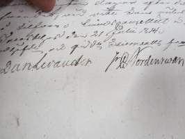 21 x 34 cm, maksuvelvoite toiseen kertaan, allekirjoitukset Daniel Levander & H.C. Nordenswan 21.7.1814 Hämeenlinnassa. Ruotsinkielinen.