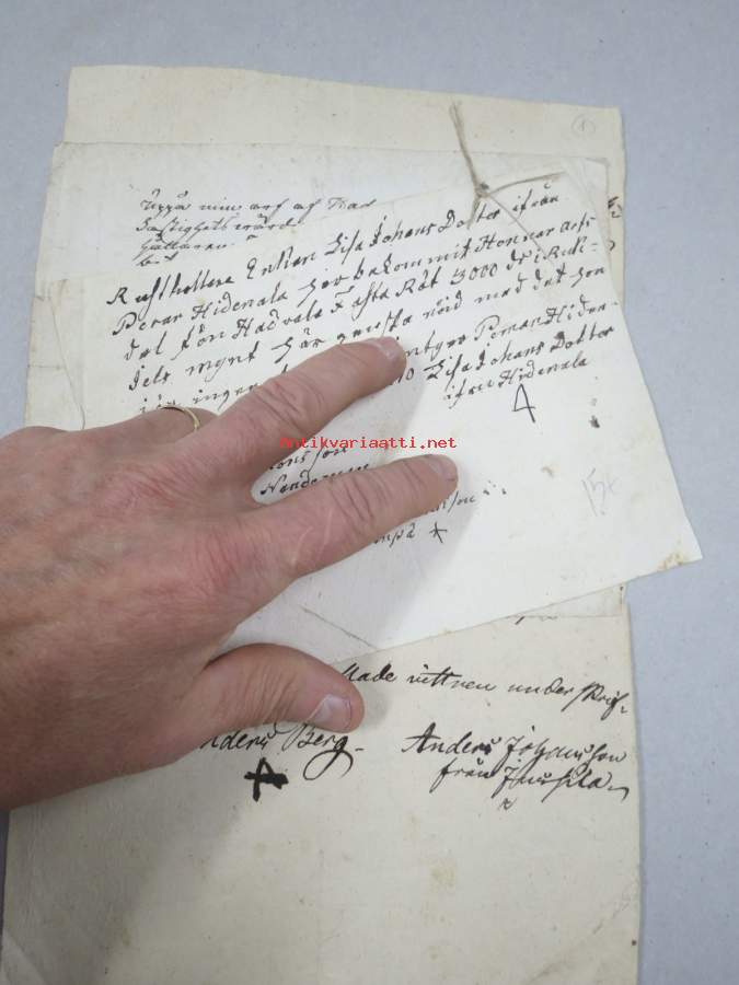 Piikkiö, Hadvala, Sepän rusthollin perimistä koskien 3 yhteenliitettyä asiakirjaa, puumerkkejä, ruotsinkielisiä, mainitaan mm. Hiidenala
