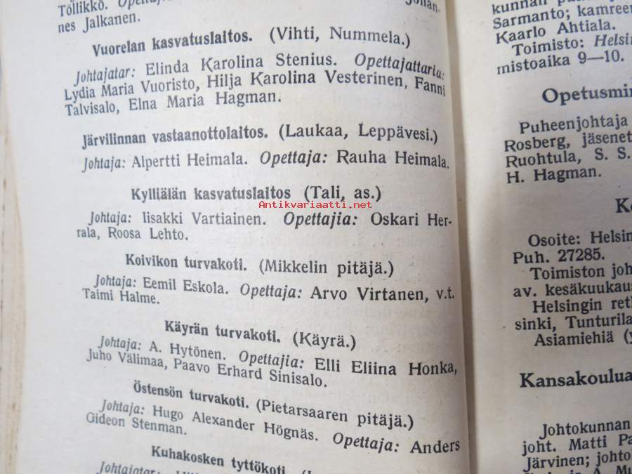Kansakoulukalenteri 1930, mainoksia, ammattitietoa, artikkeleita, sisältää myös matrikkelin virassa / toimessa olevista opettajista
