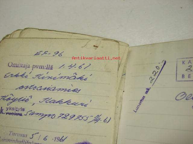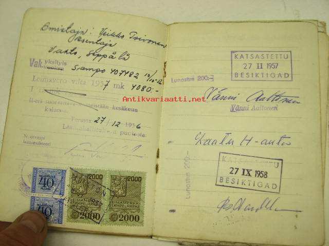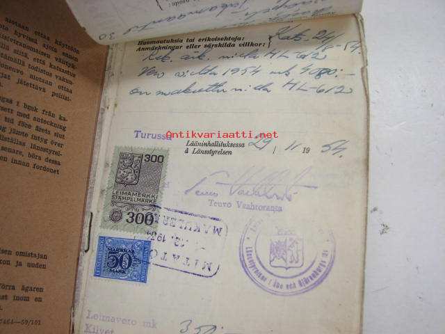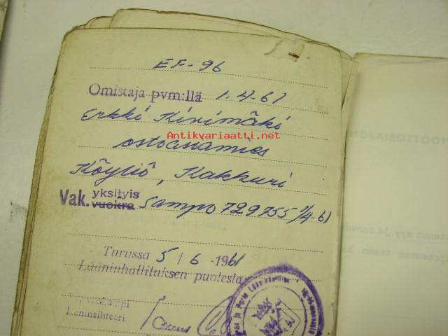 Skoda Station Wagon 1951, rekisterinro EF-96, vääpeli Martti Aaltonen, Turku -rekisteriote
