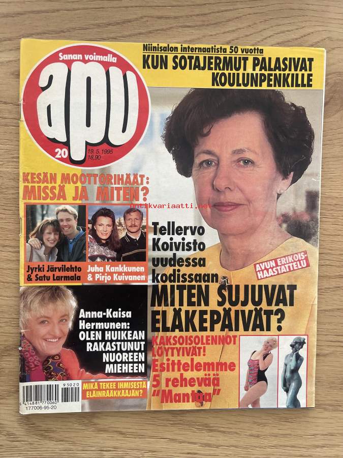 Apu 1995 nr 20 - Niinisalon internaatista 50 vuotta, Kesän moottorihäät: Missä ja miten?, Tellervo Koivisto uudessa kodissaan, Anna-Kaisa Hermunen, ym.