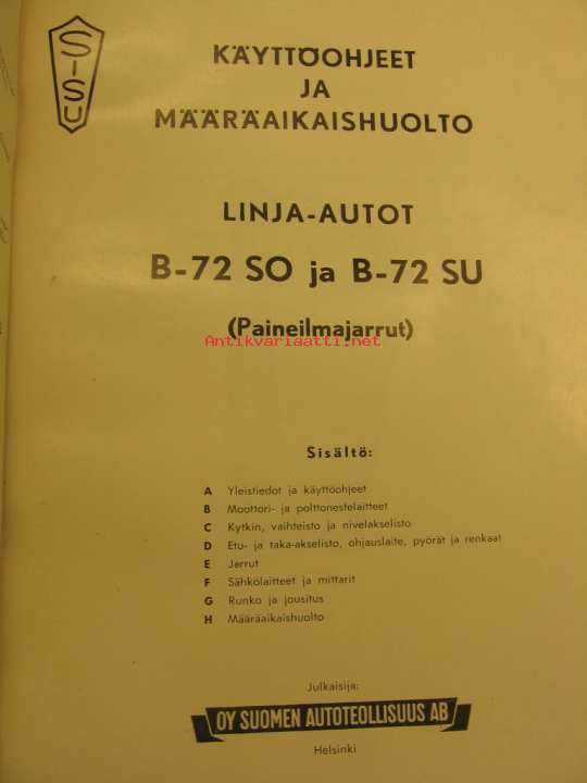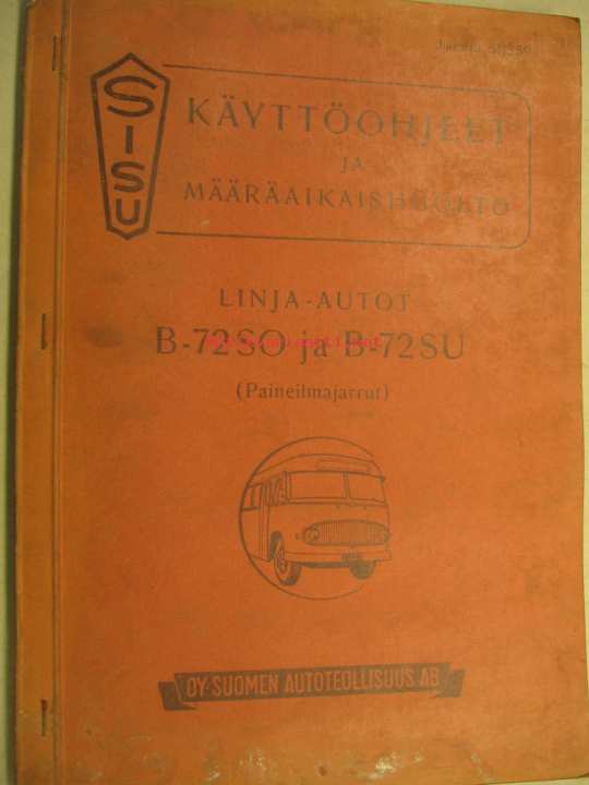Sisu Linja-autot B-72SO ja B-72SU (Paineilmajarrut) käyttöohjeet ja määräaikaishuolto