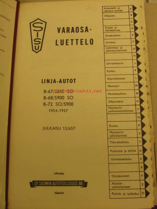Sisu Linja-autot B-67/5250 SO B-68/5900 SO B-72 SO/5900 vm. 1954-1957 Varaosaluettelo