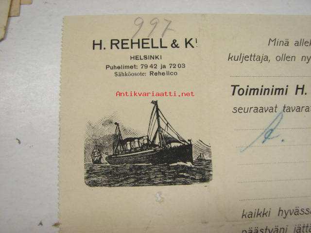 Höyrylaiva J.L. Runeberg / H. Rehell 26.6.1926 -konossomentti / laivarahtikirja "sekahedelmiä"