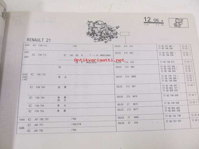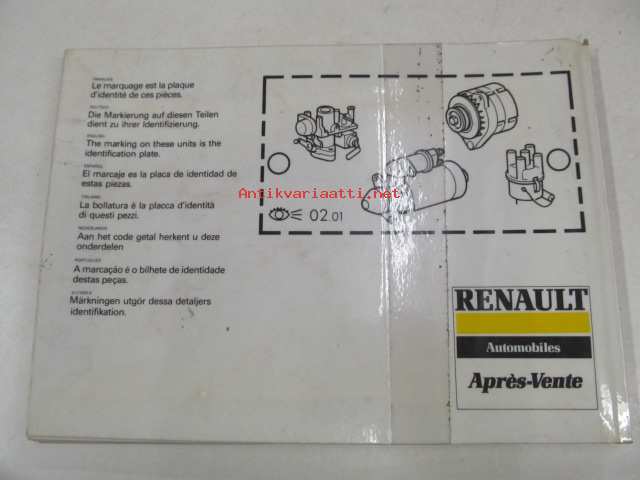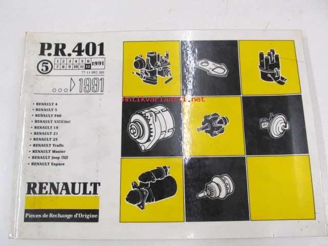 Renault 4, 5, F40, X57 (Clio), 19, 21, 25, Trafic, Master, Jeep (XJ), Espace > 1991 P.R. 401 5 12/1991 varaosaluettelo
