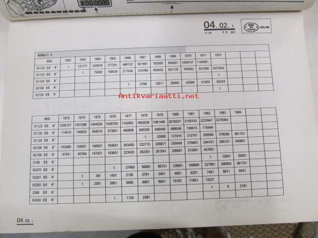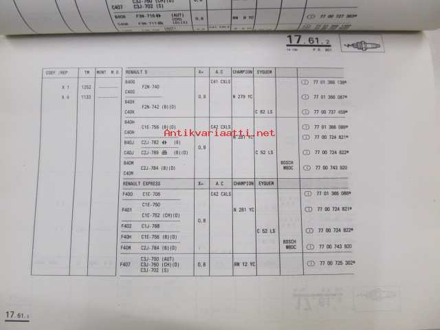 Renault 4, 5, Express, Clio, 19, 21, Nevada, 25, Espace, Traffic, Master >1991 P.R. 901 9 9/1990 varaosaluettelo