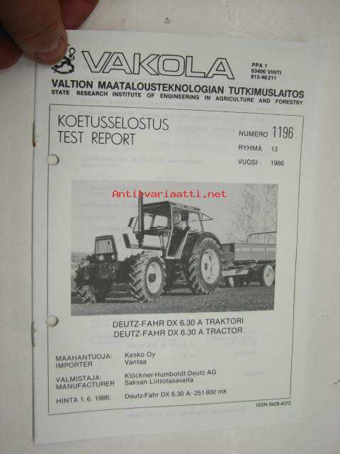 Deutz-Fahr DX 6.30 A Vakola koetusselostus 1197 1986