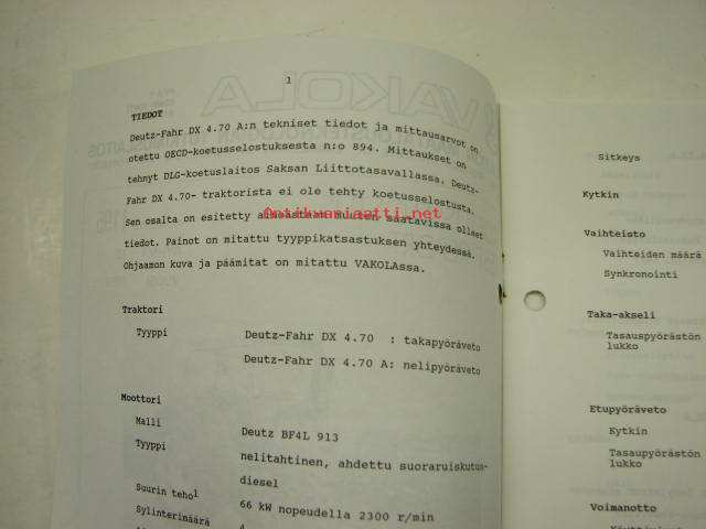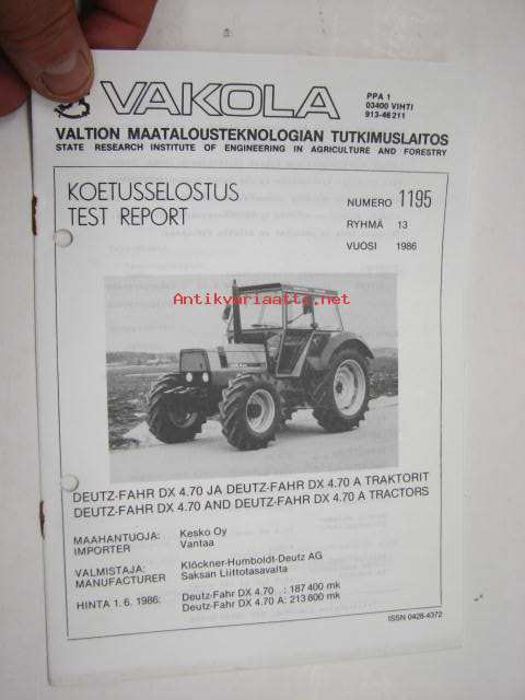 Deutz-Fahr DX 4.70 & 4.70 A Vakola koetusselostus 1195 1986