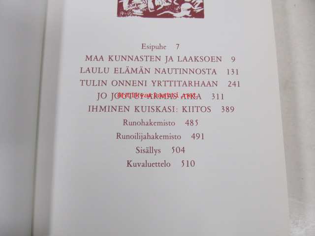 Saatavilla 1 kpl Julkaisuvuosi 1995 Sivuja 509 Painos 8. Kunto K3 Sidonta/painoasu Sidottu (kansipaperit) ISBN 951-23-3439-9 Kielet Suomi