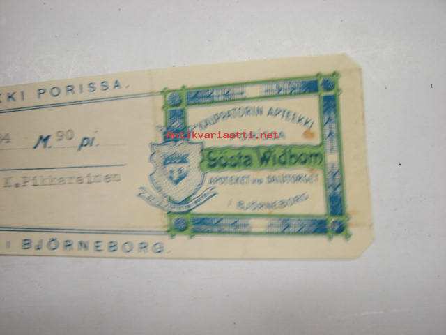 Kauppatorin Apteekki Porissa Gösta Widbom, 15.10.1951 nr 53744 -apteekkisignatuuri