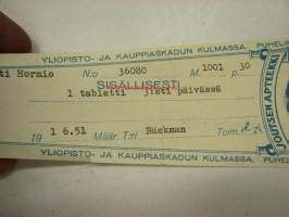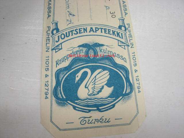 Joutsen apteekki Turku, 1.6.1951 -apteekkisignatuuri