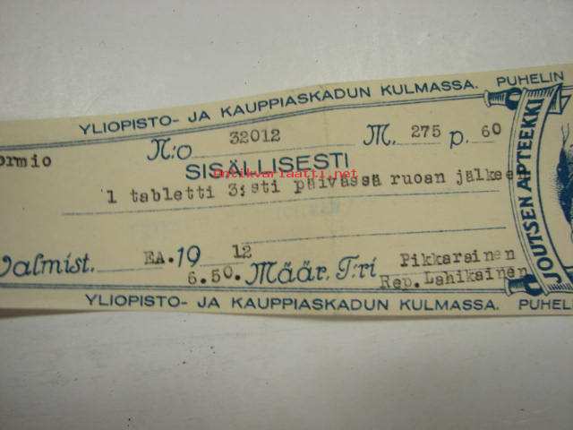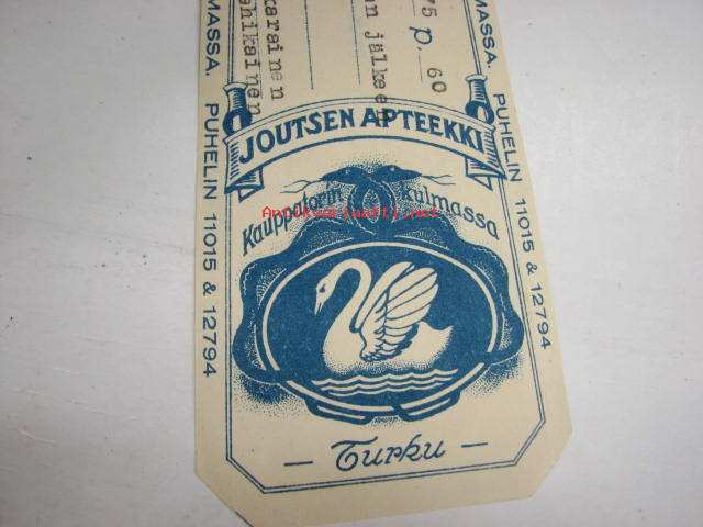 Joutsen Apteekki Turku, 6.12.1951 -apteekkisignatuuri