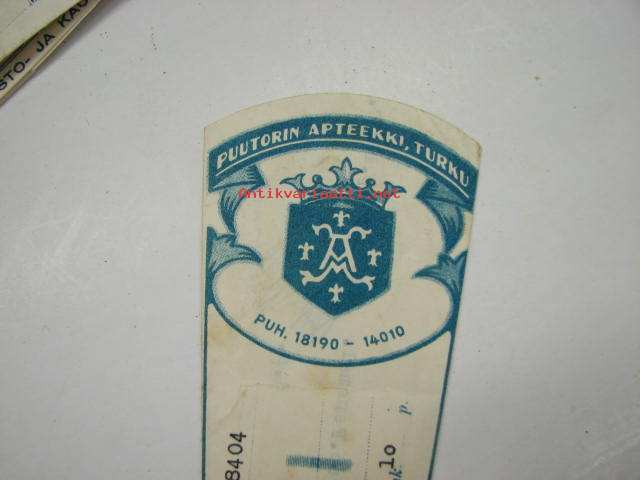 Puutorin Apteekki Turku, 22.9.1954 -apteekkisignatuuri