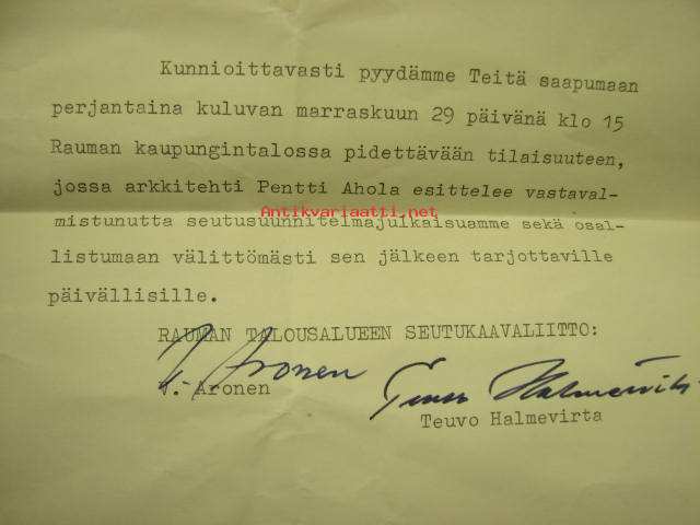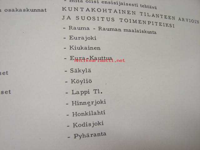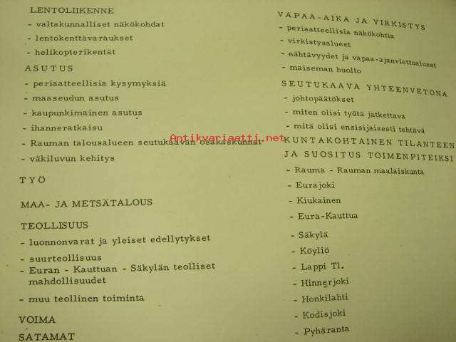Rauman Seutukaavajärjestö, 1963 22 x 30 cm. Karttaliite tallella.