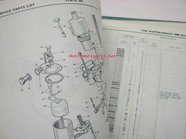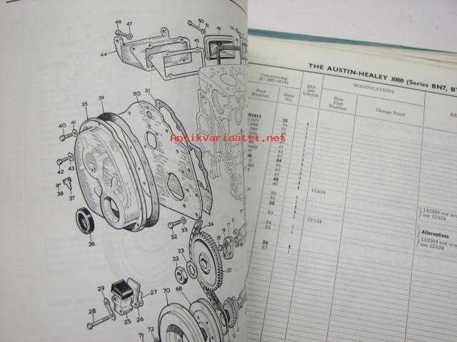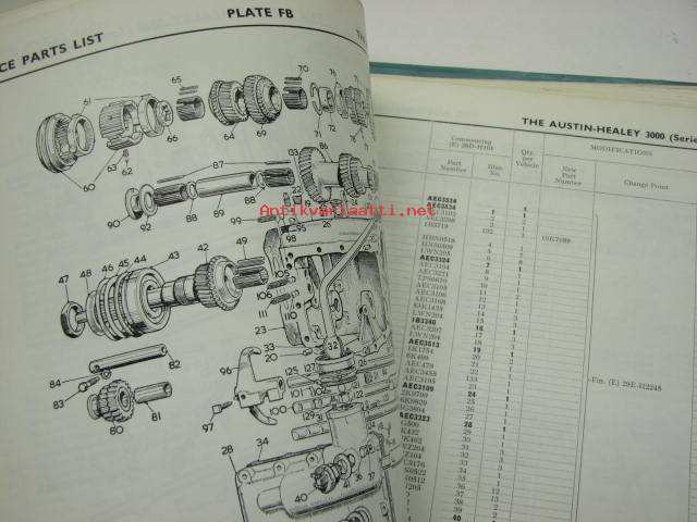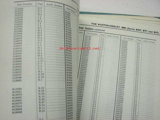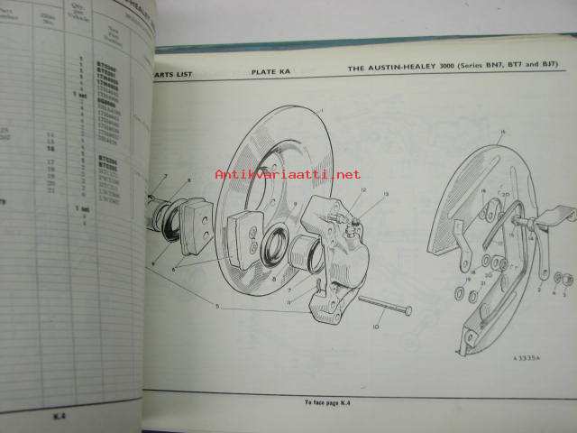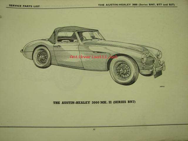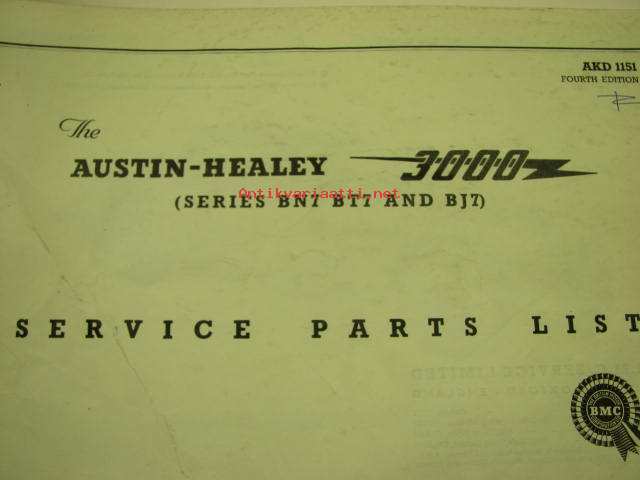 Austin Healey 3000, BN7, BT7, BJ7 Service parts list 4th edition -varaosaluettelo