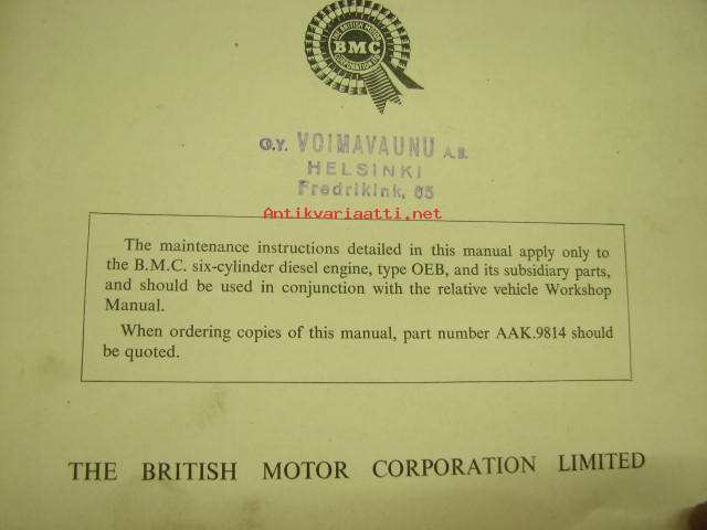 BMC 5.1 litre High Speed Diesel Engine series OEB workshop manual -korjaamokirja englanniksi