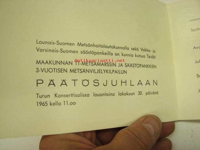 Metsäjuhla Turun Konserttisalissa 30.10.1965 -kortti