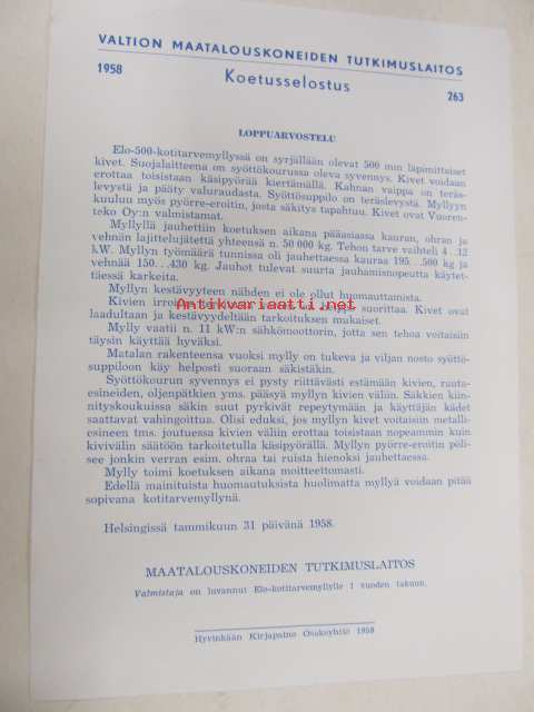 Kotitarvemylly Elo -myyntiesite