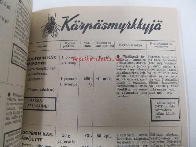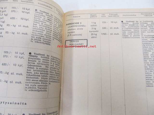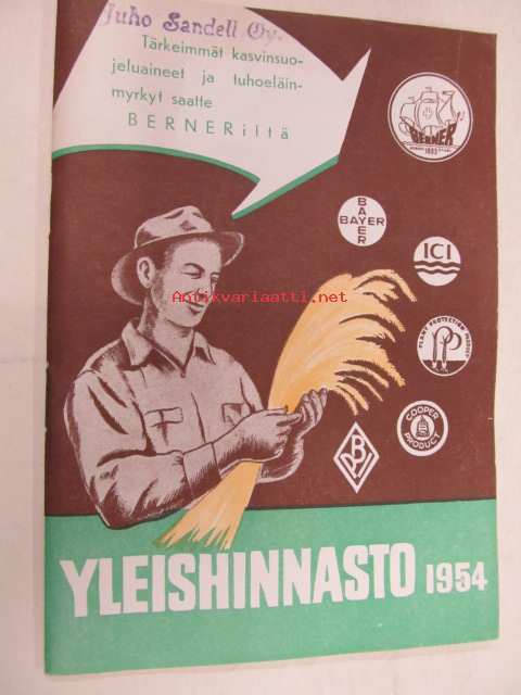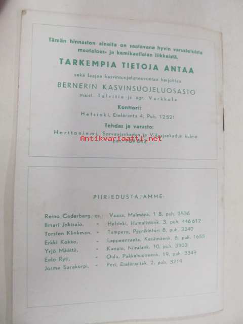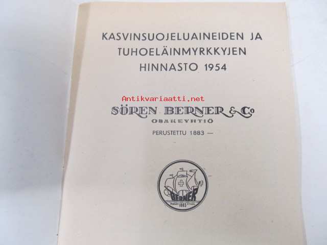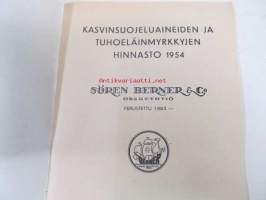 Sören Berner & Co osakeyhtiön kasvinsuojeluaineiden ja tuhoeläinmyrkkyjen Yleishinnasto 1954