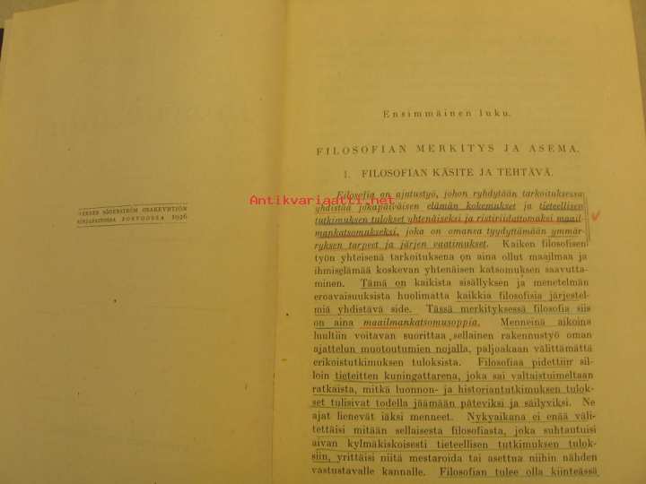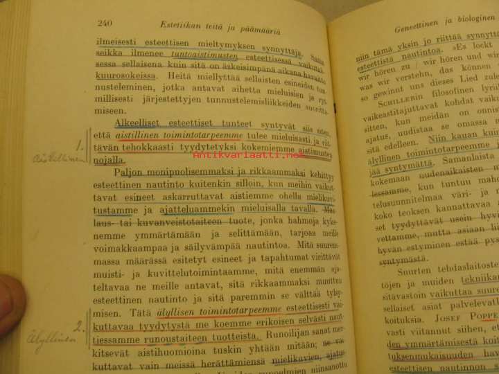 kaunis selkämys kultateksteineen, alleviivauksia