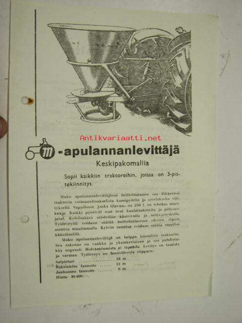 Muko apulannanlevittäjä keskipakomallia -myyntiesite