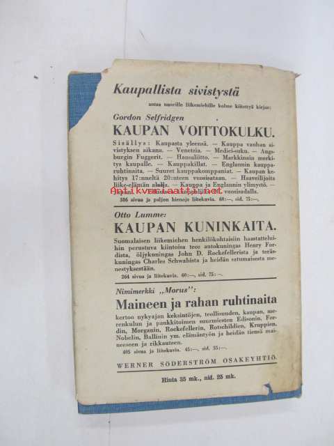 Saatavilla 1 kpl Julkaisuvuosi 1934 Sivuja 157 Painos 1. Kunto K3 Kansipaperi K2 Sidonta/painoasu Sidottu (kansipaperit) Kielet Suomi