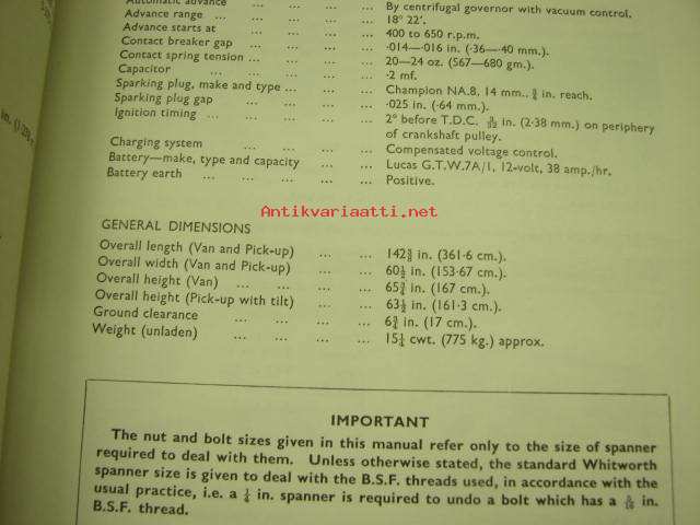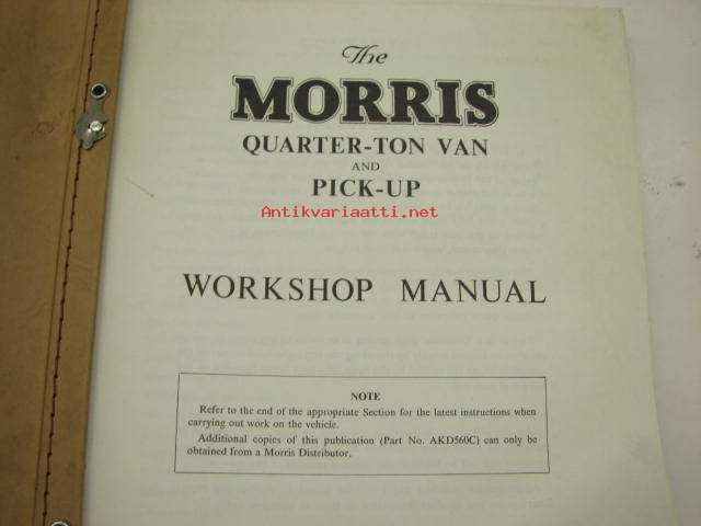 The Morris Quarter-ton van workshop manual -korjaamokirja englanniksi