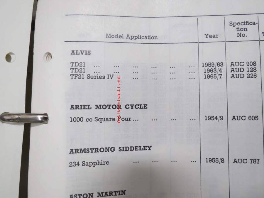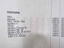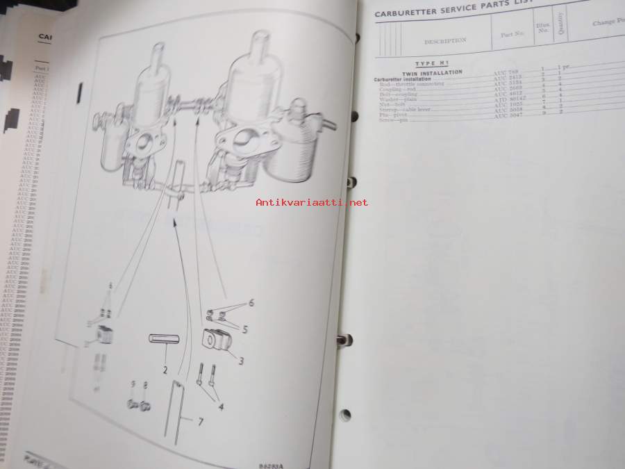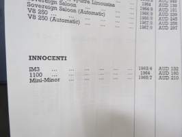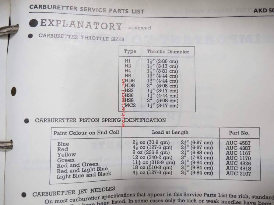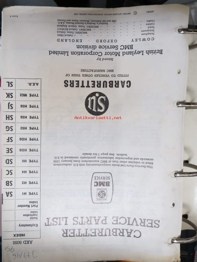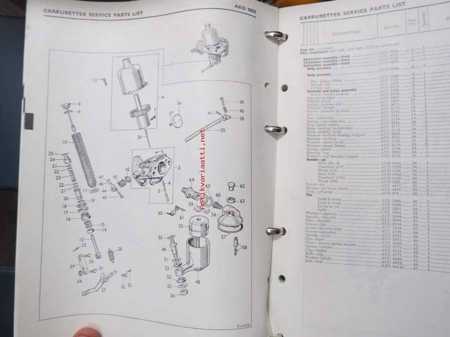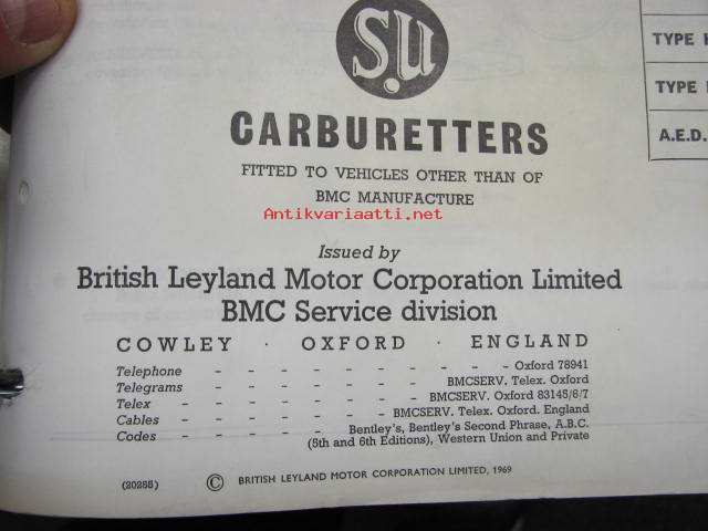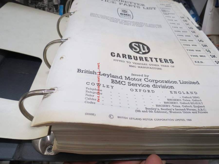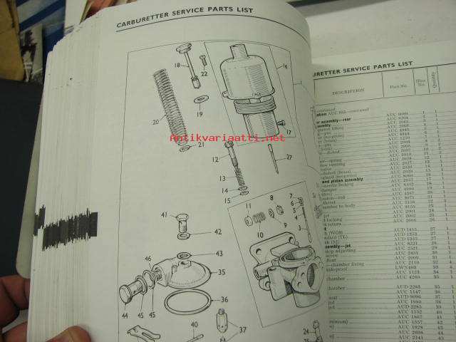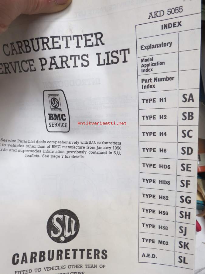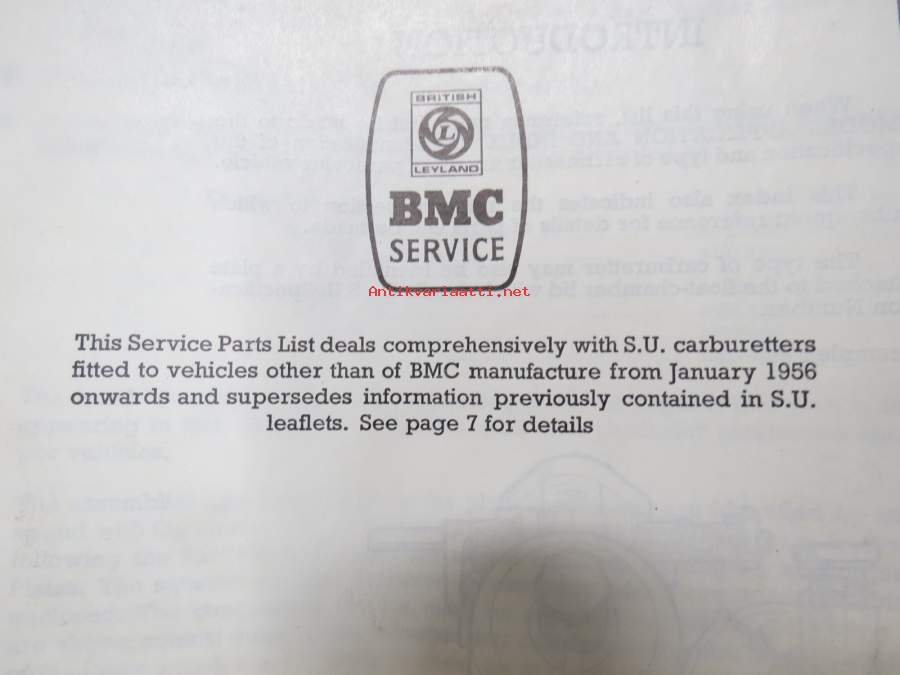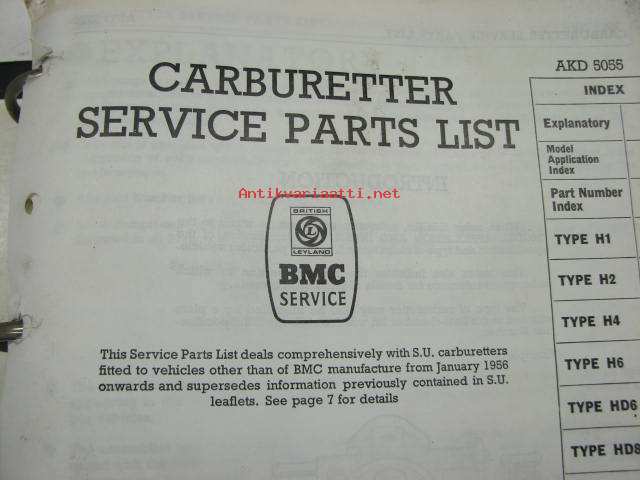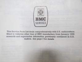 BMC / SU Carburetters -BMC-autoihin asennettujen SU-kaasuttimien räjäytyskuvat / varaosaluettelot