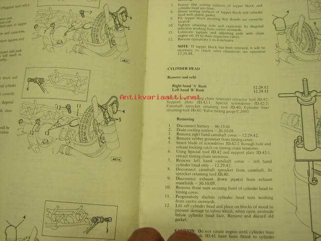 Jaguar V.12 Engine Repair Operation Manual -korjausohjekirja