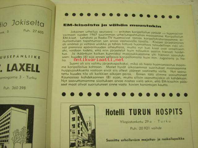 Turun Riento koripallo mestaruussarja 1967 -käsiohjelma