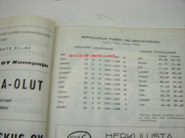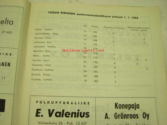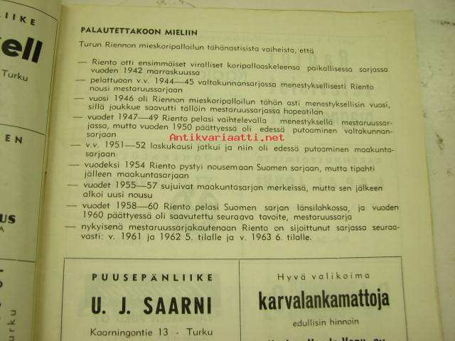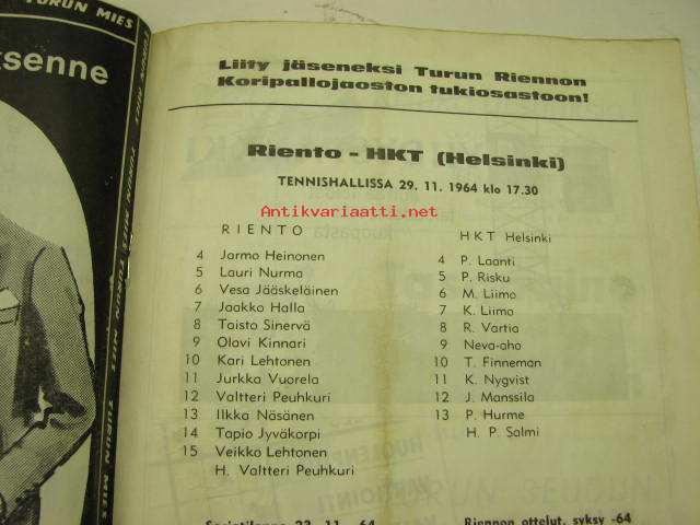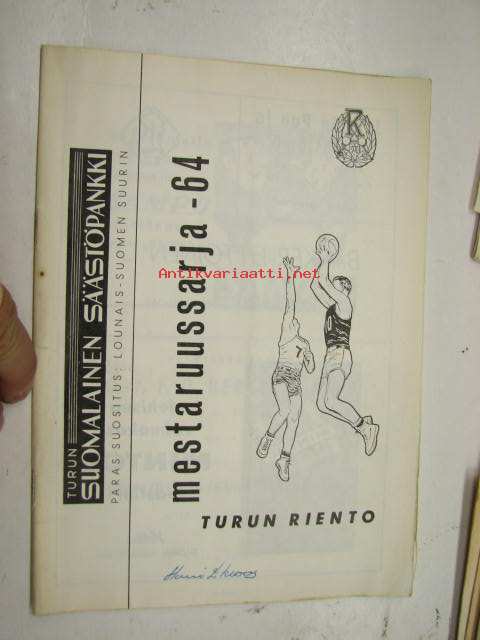 Turun Riento koripallo mestaruussarja 1964 -käsiohjelma