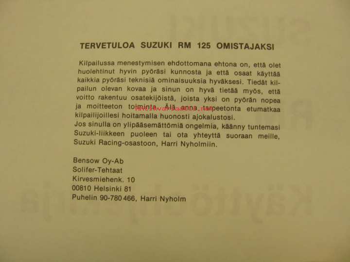 Yamaha YFM80RV Owner´s manual, Manuel du proprietaire, Manual del propietario -moottoripyörä, käyttöohjekirja englanniksi, italiaksi, espanjaksi
