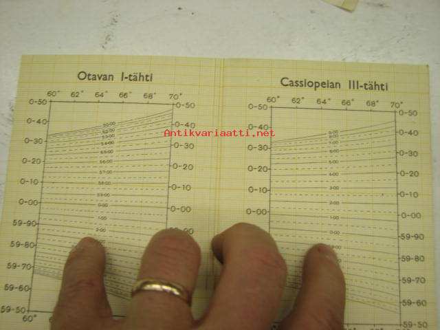 Pohjoissuunnan määrääminen Pohjantähden avulla Pl. M:n kaava T 5221 1943 (suuntakehää hyväksi käyttäen)