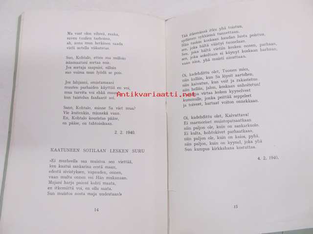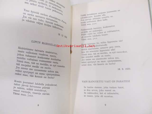 Runoja ja lauluja Suomen sodasta 30.11. 1939 - 13.3. 1940 ja Urhoollisuudesta maanpuolustuksesta rauhaan