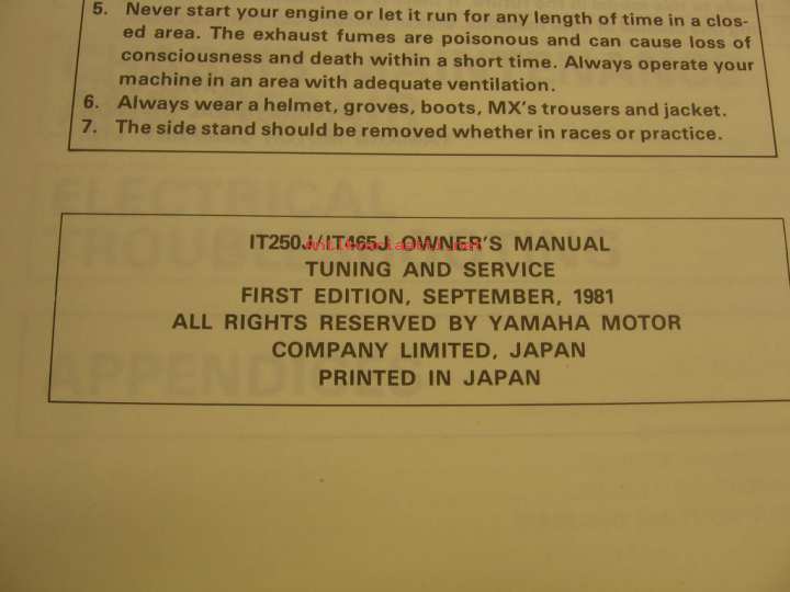 Yamaha IT250J IT465J Owner´s Manual tuning and service