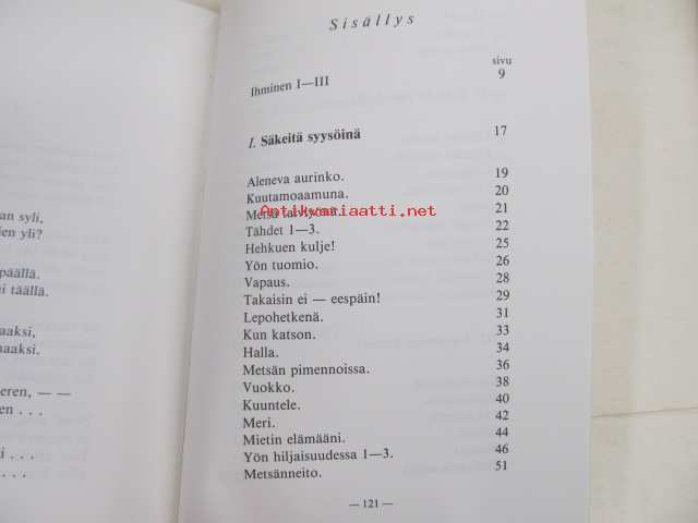 Saatavilla 1 kpl Julkaisuvuosi 1981 Sivuja 123 Painos 1. Kunto K3 Sidonta/painoasu Nidottu (pehmeäk.) ISBN 951-9352-06-6 Kielet Suomi