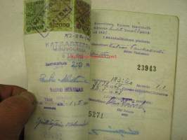 Oleskelulupa takaisinvallatulla alueella, Johanneksen kunnan Kaijalan kylästä, emäntä Maria Hänninen + lapset Heino Olavi - Aino Tellervo - Jouko Tapio, 11.4.1942