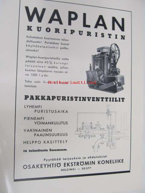Waplan kuoripuristin Oy Ekströmin koneliike myyntiesite