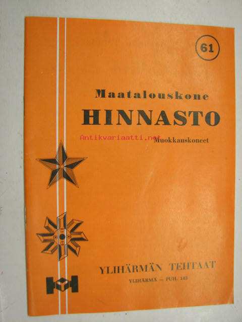 Ylihärmän Tehtaat -maatalouskonehinnasto 61, muokkauskoneet