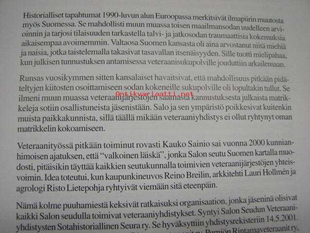 Voitto Laine, Keskitalo Tuula, Sinivaara Aarne, Venho Pasi, Helin Ossi, Hirvonen Tuomo, Salon seudun Veteraaniyhdistysten Sotahistoriallinen Seura, 2003 18 x 25 cm kirjat.
