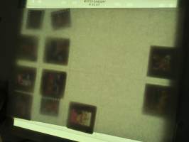 Eroottinen valokuvasarja, 8 diakuvaa, hankittu kansainvälisiltä kuvatoimistoilta käytettäväksi kotimaisten miestenlehtien artikkelien / juttujen kuvituksena