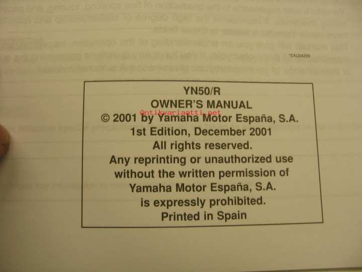 Yamaha CS50Z, CS50 JOGR Owner´s manual -skootteri, käyttöohjekirja englanniksi