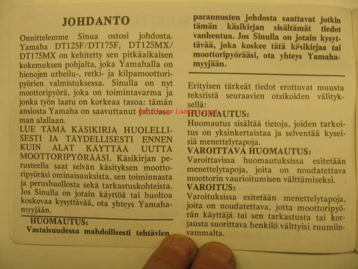 Yamaha DT125F DT175F DT125MX DT175MX omistajan käsikirja