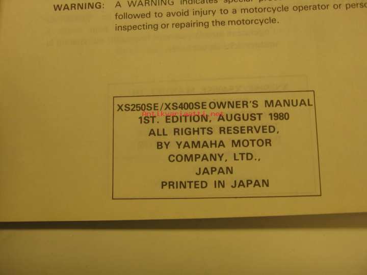 Yamaha XS250SE XS400SE owner´s manual käyttöohjekirja
