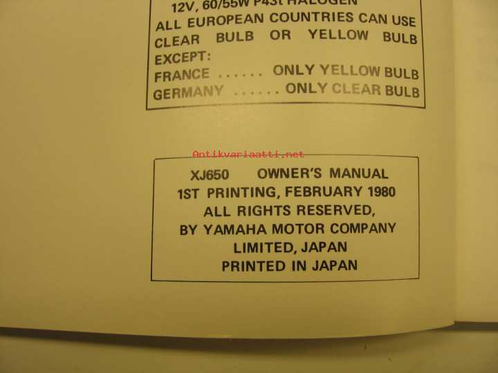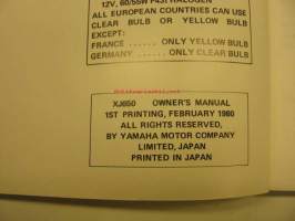Yamaha XJ650 owner´s manual käyttöohjekirja