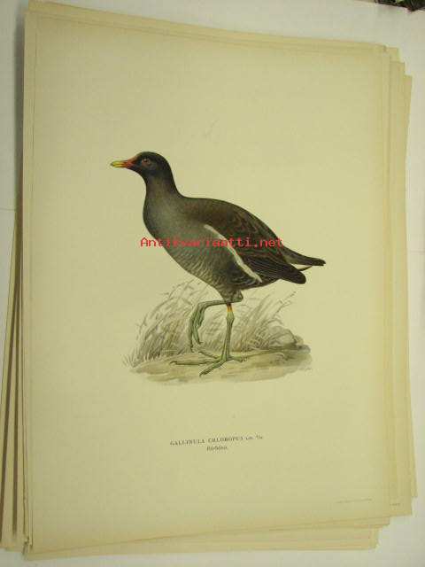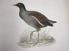 Gallinula chloropus, liejukana, rörhöna, Common Moorhen -painokuva Svenska fåglar