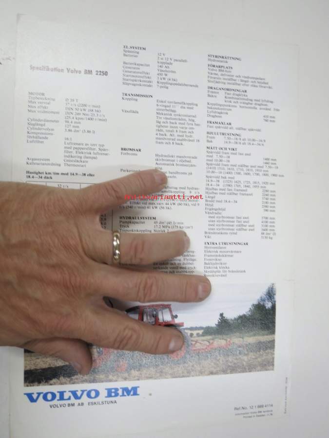 Volvo BM 2250 traktor -broschyr / traktori -myyntiesite, ruotsinkielinen