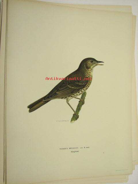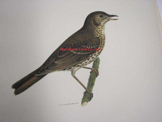 Turdus musicus, laulurastas?, Shrike, sångtrast -painokuva Svenska fåglar