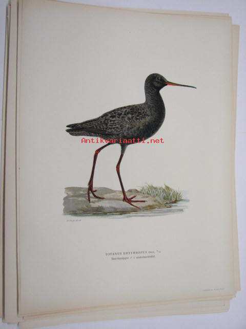 Totanus erythropus, viklo uros, svartsnappa -painokuva Svenska fåglar