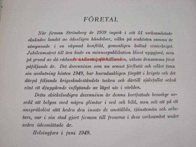 Oy Strömberg Ab Glimtar i ord och bild från det sjätte decenniet 1939-1949